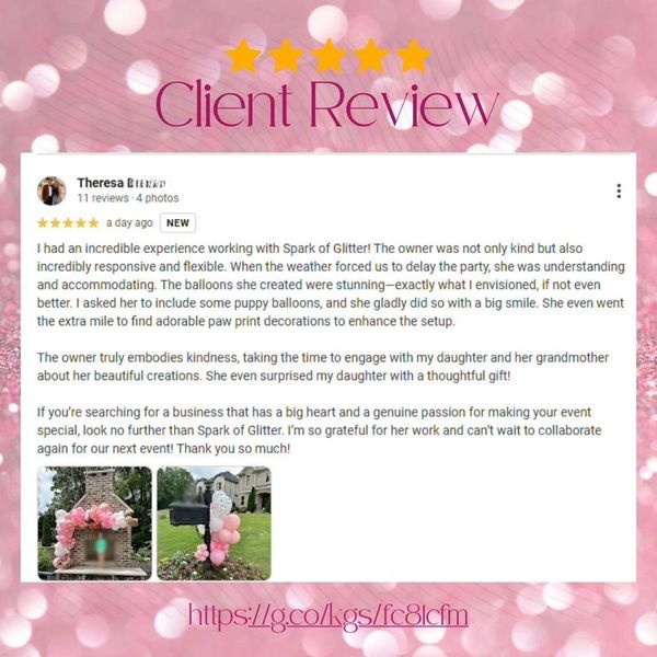 Whether you're planning a birthday, baby shower, wedding, or just want to make someone feel special, Spark of Glitter Productions is here to add that extra sparkle to your celebration. Let’s make magic together!
